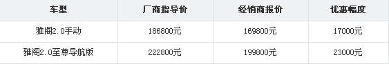 近日,编辑从北京广本经销商了解到,店里推出雅阁2.0至尊导航版,在2.0EX的基础上增加了DVD导航、智能钥匙、天使眼大灯、LED后组合灯、LED冷光踏板以及发动机内置平衡杆,目前优惠2.3万元,而普通手动型优惠1.7万元。详情请致电经销商咨询。具体价格详情如下: