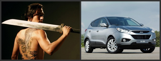 设想,英姿飒爽的浪子燕青配上动感时尚的IX35,一个是侠骨柔情的梁山好汉、一个是青春靓丽的汽车座驾,即使IX35极具SUV的高大特性,但在英雄好汉的身旁也只剩下柔情了。