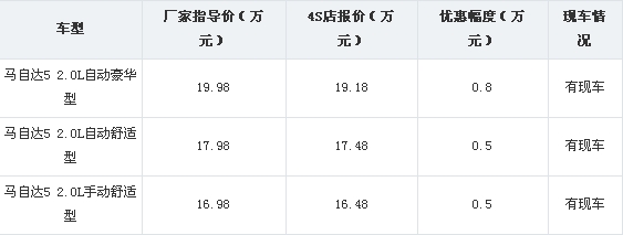 价格波动情况:马自达5上市以来销量一直不错,因而除了车展优惠之外,价格坚挺,很少出现让利。本次店庆优惠高达8000元,绝对是难得一见的机会,对这款车感兴趣的朋友抓住这次机会吧。