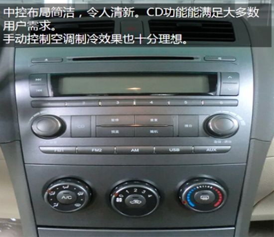 L3新锋畅舒适型内饰方面也有不少可圈可点的设计。灰色和米色的配色给人一种很舒服的感觉。丰富的配置一直以来就是比亚迪产品的一大特点,keyless无钥匙系统已经成为标配,另外它还采用了AUX+USB接口、高保真CD音响系统等同价位车型中更好的配置。