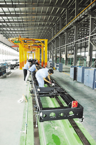 “以前生产出来的汽车零部件只能摆放在空地上,经过日晒雨淋,多数零部件到组装时已经锈迹斑斑,只好再次进行处理、喷漆,浪费了不少人力物力。现在好了,有了新厂房,整车生产流水线全部搬进新厂房,一切都在室内进行。”林德开说。