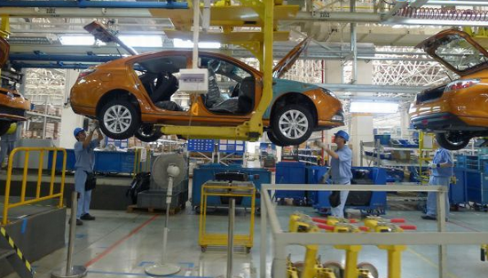 在总装车间,车主们大呼神奇,亲眼见证车壳子一步步变成一辆车。在这里有三个值得我们关注的问题。一是自动质量控制点,所有的东西,比如说扭矩,都通过计算机控制,而且记录下来,一旦螺丝拧紧过程中出现问题,就可以从计算机中查到,从而保证每个螺丝的装备质量。另外,在总装车间可以看到一排排自动行驶的小车,这就是SPS系统(就是随行料架)。一个工厂要生产4、5款车型,每个车型配置都不一样,如何实现在一条总装线上生产这么多的车型呢?就是靠这个SPS系统。SPS系统完全由电脑控制,料架和车子一起走,一个车子的物料配好放在车子上,料装完这个车子就装完了。第三个就是安灯系统,如果生产线上的装配工人发现问题,就拉动拉绳,流水线就会停下来,直到问题解决。精益化、敏捷化、柔性化、模块化生产方式贯穿了整个生产流程。