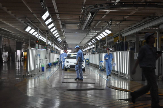 焊接好的车身直接从一条传送带,运送到油漆车间。荣威和MG均采用了水溶性电泳、无铬钝化,水性漆设计,而且所有的废弃物都会被焚烧。由于油漆车间有洁净度的要求,只要有大于10微米的灰尘,喷好漆以后就是一个缺陷产品。为了保证喷漆质量,这里不允许参观,车主们也只能绕过喷漆车间,来到总装车间。