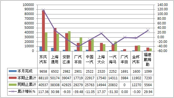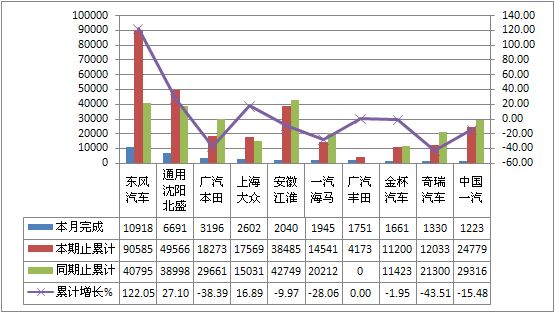 2011年8月多功能车生产37163辆,累计生产321365辆,销售37582辆,累计销售313410辆,同比累计增长分别为15.89%和14.32%。