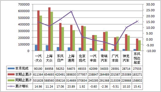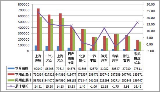 2011年8月基本型轿车产量 TOP10 单位:辆,%
