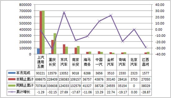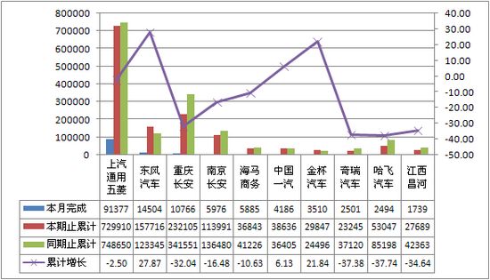 2011年8月交叉车型生产152730辆,累计生产1448566辆,销售147992辆,累计销售1478358辆,同比累计增长分别为-8.94%和-10.09%。