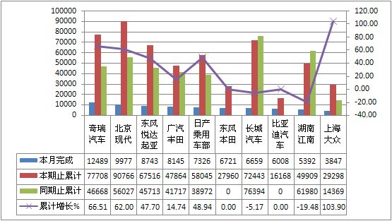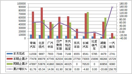 2011年8月两驱运动型多用途车生产85196辆,累计生产638555辆,销售79414辆,累计销售625099辆,产销同比累计增长分别为37.28%和35.27%。
