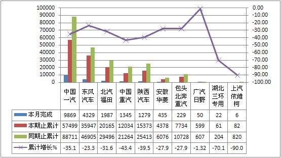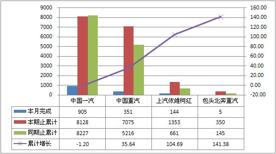 40吨<准拖挂车总质量的产销量分别为1194辆和1405辆,产量和销量分别同比累计增长22.41%和17.44%。