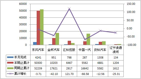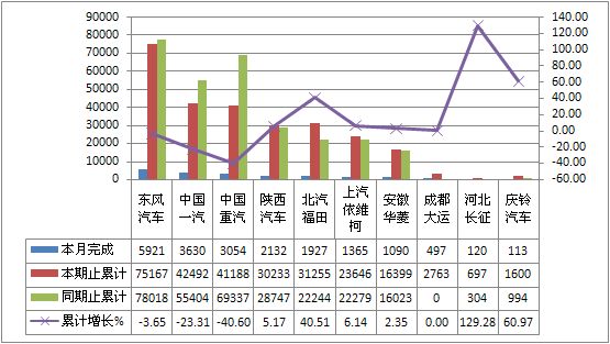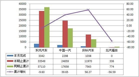 2011年8月货车非完整车辆生产30845辆,累计生产396660辆,销售34729辆,累计销售425784辆,同比累计增长分别为-14.64%和-10.20%。