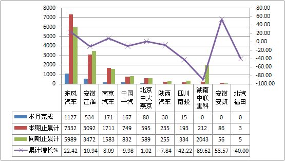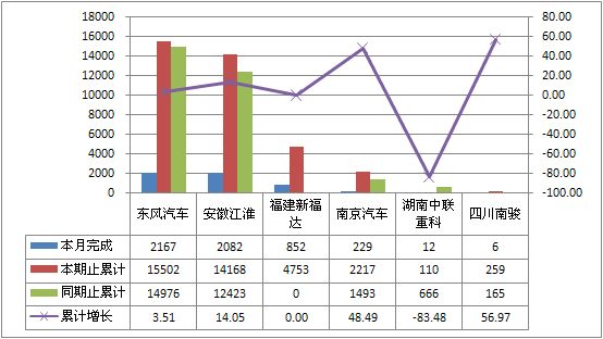 2011年8月客车非完整车辆生产7356辆,累计生产53802辆,销售7669辆,累计销售55154辆,同比累计增长分别为-3.10 %和0.34%。