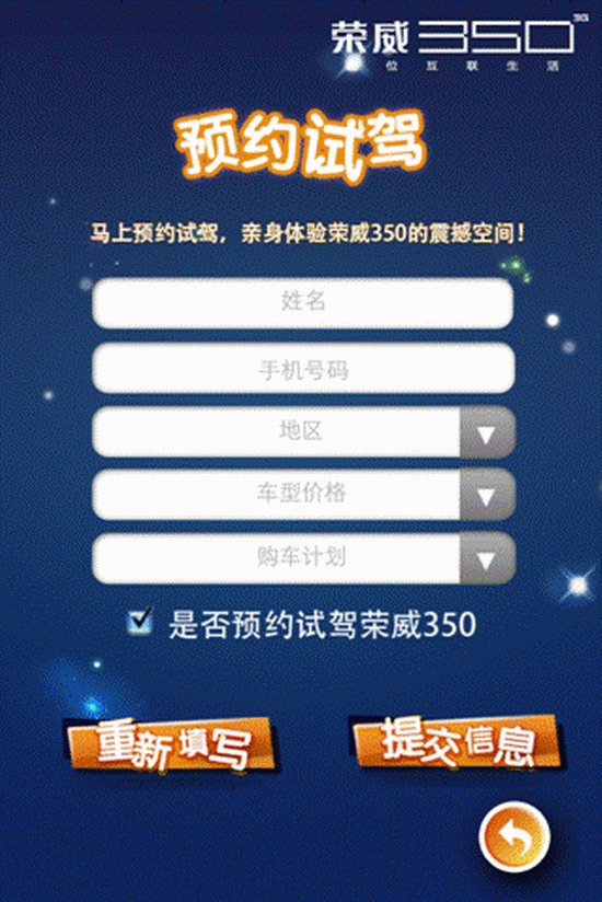 当然,"荣威350车震摇摇乐"除了娱乐,还有一项特别功能,就是荣威350试驾在线预约。娱乐之后,还可以直接通过"摇摇乐"的平台提交预约试驾信息,可谓一举两得。 被称为"全时在线"中级轿车的荣威350,是上海汽车基于全新紧凑车型平台Global A研发的首款产品,全方位地满足了消费者日常用车的需求。特别是其凭借对3G系统的开创性运用,可谓是开启了一个全新的汽车时代,成为当下最热门、最受消费者关注的车型之一。荣威350的inkaNet3G智能行车服务系统曾以其开创性与颠覆性震撼车坛,它为驾驶者提供了车载网络浏览器、实时导航、无线通讯,以及丰富的娱乐功能,日前其还推出了全新2.4版本。新版inkaNet 系统不仅大幅提升了蓝牙功能、增设10几个城市的地区分组,还添加了众多第三方应用与实用功能,进而令车主获得更全面更新鲜的娱乐行车生活。
