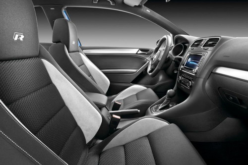 空调出风口也被设计的更有个性,不过中控台还是高尔夫样式。最吸引人的要算是运动座椅。两侧凸起的支撑负责将身体牢牢地绑在座椅上,搓板型的纹路感觉很有型,而头枕上刺绣的字母R,表明了它与普通尚酷的不同。