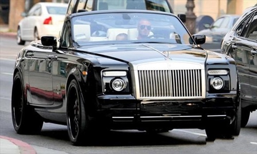 大卫·贝克汉姆和劳斯莱斯幻影(报价 图片 参数)敞篷车 在洛杉矶的街道上,一辆黑色的劳斯莱斯幻影敞篷车开过,而车上的驾驶者是著名的国际球星大卫·贝克汉姆。这辆车价值40万美元,功率输出可达到338千 瓦,峰值扭矩可以达到720Nm,最高时速为240km/h。