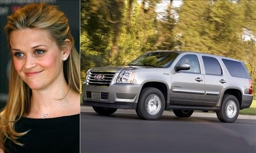 瑞茜·威瑟斯彭和通用Yukon Hybrid下面我们要说的是《一往无前》中的女主角瑞茜·威瑟斯彭和她选择的座驾。她不像很多好莱坞的女星一样选择较小的丰田Prius或者是MINI Cooper,她选择的是通用Yukon Hybrid。这辆车有一个V8发动机,可以托6千磅的东西。我搞不清楚一个一张图片就值1千5百万的明星开这样一辆车有什么用,不过,这辆车真的是很酷 的。