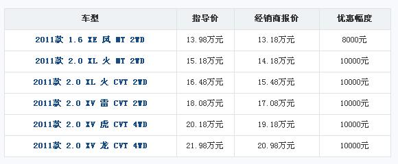 近日,从东风日产龙日专营了解到,目前2011款逍客现车较充足,目前2011款逍客最高现金优惠10000元,部分车型另送购车大礼包,购买需提前预订,订金5000元,有兴趣可直接致电或到店详细咨询。