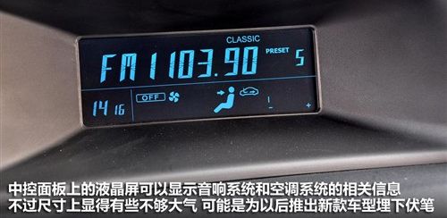 我们体验的这款车型为售价10.38万元的顶配车型,中控台上却只有一个尺寸不大,显示也非常简单的液晶屏,这样的设计似乎和同级别或同价位的自主品牌表现有些距离,不知道是成本影响还是为以后升级埋下伏笔。