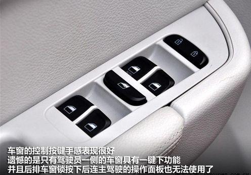 天窗具有一键开启和关闭功能,但是操作开关的声音太清脆了,和其它按键有着很鲜明的对比,质感上让人感觉到有着不小的差距,希望这部分能够加以改进。
