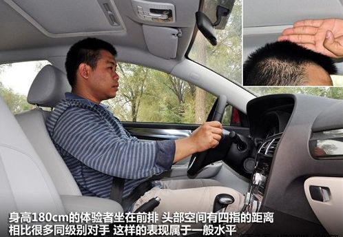 中华H530在乘坐空间方面的表现还是令人满意的,身高180cm的体验者坐在前排将座椅调至最低时,头部空间为四指;当坐到后排时,头部空间仍然可以保持在四指,后排头部空间优秀的表现要归功于它车顶上凹的设计,腿部空间也可以达到近两拳。