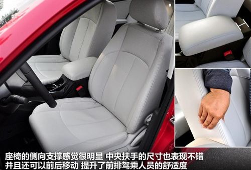 前排座椅在乘坐时,可以提供比较有效的侧向支撑,舒适性方面的表现还是不错的。前排的中央扶手宽度和软硬都可以领驾驶者使用起来很舒适,而且前后调整的量很大,可以适应不同身高的驾驶者。