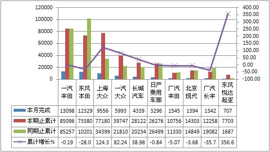 2011年9月四驱运动型多用途车产量TOP10 单位:辆,%