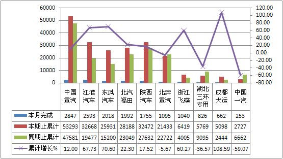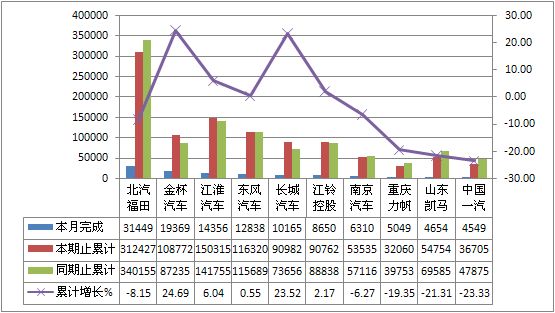 2011年9月货车生产219151辆,累计生产2006917辆,销售217505辆,累计销售2075380辆,同比累计增长分别为-4.48%和-2.36%。