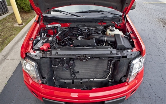 我们试驾的这辆2011款F-150搭载的是一台双顶置凸轮轴的3.7升Duratec V6发动机,这台自然进气引擎最大功率达到302马力,最大扭矩达到了377Nm。Ti-VCT技术的应用让这款车的低转扭矩得到改善的同时提高了燃油经济型并减少了排放。2011款F-150车型的另外一大特点便是轻型皮卡首次应用了电动助力转向系统(electric power steering ),EPS取代了液压助力转向系统所带来的效果便是燃油经济型提高了4%。