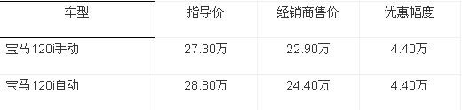 作为当今世界唯一的紧凑型豪华后驱两厢轿车,BMW 1系完美呈现了掀背型轿车的功能性与BMW典型的驾驶特性,在其细分市场树立了新的基准。近日,新浪汽车通讯员从广州地区宝马经销商处了解到,现在购买宝马120i手动和自动车型,均可以获得4.4万元的现金优惠,店内详谈或许还有购车大礼包相送。此外,BMW“新车重购”方案,现已全面启动!现有BMW和MINI车主,于2011年4月1日至12月31日期间成功购买BMW新车,即可享受6000元—10000元不等重购优惠礼券,感兴趣的朋友不妨致电当地经销商。