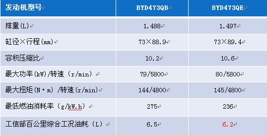 从上表的参数可以看出,比亚迪2012款新G3搭载的473QE发动机相较于前一款所使用的473QB发动机在功率、扭矩方面均有所增大,且最低燃油消耗率降低了,动力性能更优良,油耗更小,实现了高性能的目标。