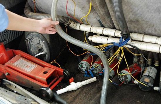 凌晨2点左右,面包车开到沙河路口,停在了路边。车上窜下3人,其中一名年纪较大的中年男子提着油壶、水管,一下子摸到路边一辆大型翻斗车的车身下,用一把“匕首”似的工具撬开油箱盖,之后熟练地用水管从油箱里抽油;另两名男青年则东张西望,为中年男子“放风”。