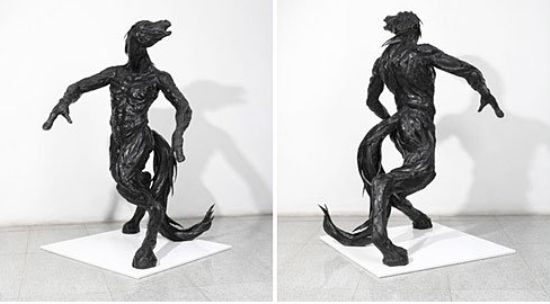这是韩国艺术家Yong Ho Ji用轮胎做成的犀利雕塑,每一件都只用到了轮胎为主要原料,辅之以合成树脂进行粘合,并用钢架来固定。艺术家说,他给自己的这套作品起名为“突变神话”(Mutant Mythos),反映的是达尔文进化论主导下的大千世界——由各种较低等的动物,最终进化到人。