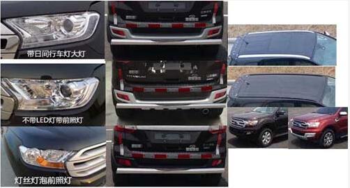 | 备注 | 1.主要专用装置防弹防暴运钞舱;2.安装前门或中门隐形射击孔;3.随底盘选装:前大灯,轮胎,轮辋,不镀铬行李架,不镀铬前后保险杠下体,外后视镜,翼子板转向灯,外门把手,天窗,鲨鱼鳍天线,可见排气管,尾部标识;4.随底盘装ABS, 型号:EB3C-2C405-**或GB3C-2C405-**生产厂:博世汽车部件(苏州)有限公司,发动机最大净功率:180kW. | ||