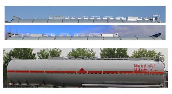 | 备注 | 罐体有效容积:37.8立方米;运输介质为:沥青;密度为(单位:千克/立方米):900;罐体为双层保温结构,保温层厚度为50mm;罐体外胆外形尺寸(单位:mm):11050×2490×2300,(罐体为鹅颈式,前端高为2120);危险货物类项号为第3类;危险货物运输车辆的车辆类型:AT型车辆;该车为全铝合金结构;ABS生产厂家/型号:威伯科汽车控制系统(中国)有限公司/400500XXX0;广州瑞立科密汽车电子股份有限公司/CM2XL-4S/2M.外保温皮可选用亚光不锈钢,镀锌板,彩涂板,铝合金;保温方式可用铆钉铆接,可用保温带绑扎.顶部可为挡水槽式,也可为走台式.选装空气悬架,挡泥板,顶部结构及活动围栏,罐顶升降护栏,灯具,灯支架,前后爬梯位置/数量,前接线盒位置.侧防护和后防护材料为:铝合金,连接方式:螺栓连接;后下部防护装置的主要尺寸(断面高×宽为:160mm×50mm,离地高为520mm).因地域气候区别,可根据用户要求选装加热炉单炉或双炉.选装轻型车架结构时,整备质量为7200Kg,额定载质量为32800Kg.采用适用于牵引危险品运输半挂车的牵引车. | ||