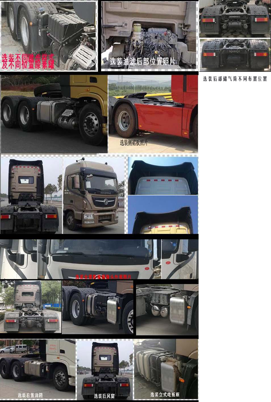 | 备注 | 导流罩、气喇叭、侧裙板、驾驶室后窗为选装件,选装导流罩支架固定式和可调式两种形式,选装双侧双油箱或单侧单油箱,选装不同EGP外罩盖样式,选装左侧或右侧电瓶框以及平铺或立式电瓶框.发动机DDi13E520-60,DDi13E560-60对应净功率为375kW,403kW.ABS厂家及型号;WABCO,4461350500;东科克诺尔商用车制动系统(十堰)有限公司,ABS 8.安装具有卫星定位功能的行驶记录仪.选装全景影像摄像头、燃油滤清器位置、铝合金贮气筒。 | ||