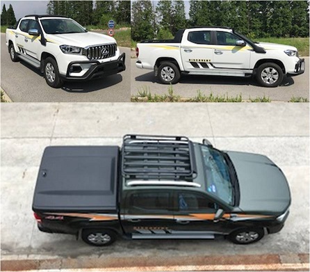 | 备注 | 选装前围、驾驶室天窗、硬质货箱平盖、车身反光标识、护栏、防滚架、外绳钩、后拖车钩、车顶行李框(高2050mm)、行李架(高1845mm)、前防护杠(长5830mm、前悬1092mm、接近角22.8°)、喷漆格栅、钢轮圈、铝轮圈、侧围标识、尾部标识、涉水喉、集滤器、底盘护板;选装与车身同色或镀铬的前后保险杠、后视镜、门把手;可选不装外绳钩、前雾灯、侧踏步.ABS型号:ABS9.0,ESP9.0,ABS生产企业:博世汽车部件(苏州)有限公司,博世汽车部件(苏州)有限公司.发动机最大净功率为103.3kW. | ||