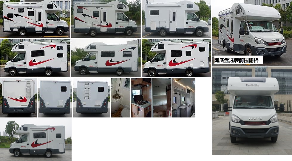 | 备注 | 1.该车装备桌椅、睡具、厨具、卫生间等旅居生活专用装置;2.外部选装不同位置的门窗、储物舱门、220V外接市电口、注水口,内部选装不同布局,后部选装爬梯;3.两侧及后下部为裙边结构代替侧后防护,侧防护离地高度340mm,后防护离地高度410mm;4.ABS系统控制器型号:BOSCH ABS9, ABS系统控制器生产企业:BOSCH公司,发动机最大净功率为105kW;5.随底盘选装ESP,选装自动变速箱,随底盘选装前围栅格. | ||