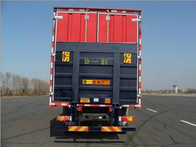 | 备注 | 车厢顶部封闭,不可开启,随底盘选装平顶小排半、平顶带导流罩驾驶室,选装单开门、双开门、不开门,平板、彩板、瓦棱板车箱,选装液压尾板,尾板收起状态的水平长度300mm,车厢尺寸长度对应关系:9400(大排半驾驶室),9700(小排半驾驶室).侧面防护装置的横杆材料为Q235,螺栓连接,后下部防护装置的横梁材料为16MnREL,螺栓连接,断面尺寸120×60mm,离地高度为540mm,额定载质量7620kg对应准乘2人,7555kg对应准乘3人. 安装具有卫星定位功能的行驶记录仪,ABS系统生产厂家,1:浙江万安科技股份有限公司,型号:VIEABS-Ⅱ,ABS系统生产厂家2:WABCO,型号:44600XXXX0.油耗申报值与发动机对应关系:26.13(CA6DK1-28E51,CA6DK1-28E5).随底盘选装限速装置,限速89km/h. | ||