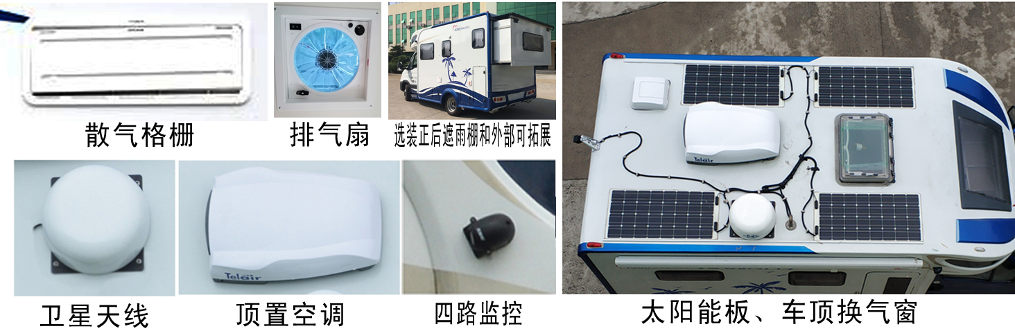 | 备注 | 厢体内部按旅居卧室布置,配置桌椅,卫生间,床具,卫浴和炊具;选装两侧外形,车厢两侧及后部均可开散热格栅和仪器舱门.选装四路监控、太阳能板、车顶换气窗、卫星天线、顶置空调;选装后部拓展及遮雨棚;选装排气扇、散热格栅;无选装时,整车宽度2425mm,选装有四路监控和遮阳棚时宽度为2470mm.无选装时整车高度2930mm,选装排气扇时为3000mm,选装卫星天线时为3130mm,选装顶置空调时为3150mm.标配6人时,整备质量4082kg,高配5人时,整备质量4150kg;侧防护和后防护由车体结构代替,侧防护离地高为278mm,后防护离地高为323mm;ABS系统控制器型号:BOSCH ABS9, ABS系统控制器生产企业:BOSCH公司.发动机最大净功率105kW | ||