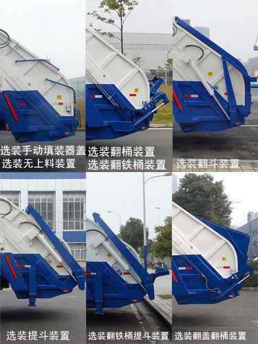 | 备注 | 该车仅选装4500mm轴距,有6种配置:A(基本型),B(选装翻桶装置),C(选装提斗装置),D(选装翻斗装置),E(选装翻盖翻桶装置),F(选装翻铁桶提斗).配置A时,整备质量10370kg,额定载质量7435kg;配置B时,整备质量10650kg,额定载质量7155kg,配置C,D,E时,整备质量10800kg,额定载质量7005kg;配置F时,整备质量10950kg,额定载质量6855kg;配置A,长8530mm,后悬2740mm;配置B,长8935mm,后悬2740mm,后伸405mm;配置C,D,长8630,后悬2840mm;配置E,长8740mm,后悬2740mm,后伸210mm;配置F,长8880mm,后悬2740mm,后伸350mm.该车通过垃圾箱,填装机构等装置,达到垃圾收集装填及推挤卸料的作业功能.侧面防护装置材料为铝合金,与车辆的连接方式为螺栓连接,工作装置代替后下部防护,最大离地高度460mm.涂装可变,选装四种填装器盖外形;随底盘选装ISD210 50发动机,对应的油耗值为31.1;随底盘装ABS.ABS控制器厂家/型号:ABS-E 4S/4M/威伯科汽车控制系统(中国)有限公司,该车安装具有卫星定位功能的行驶记录仪. | ||