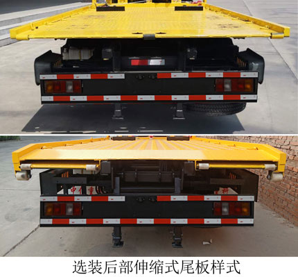 | 备注 | 仅选轴距3280mm;该车用于道路清障,专用装置为平板,托举臂;托举质量:500kg;侧防护装置材料为Q235,连接方式为螺栓连接;后下部防护装置由工作装置代替,下边缘离地高度420mm,ABS系统生产企业/型号为:广州市西合汽车电子装备有限公司/XH-KQ4S4M-E01.随底盘选装驾驶室,灯具,后视镜,前面罩,后视镜支架.选装后部伸缩式尾板样式.选装侧防护装置样式. | ||