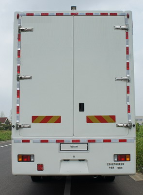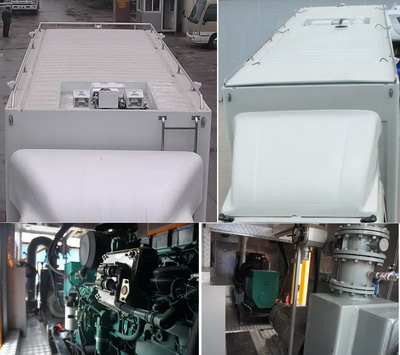 | 备注 | 该车是在无电源供应或抗震救灾等情况下用于应急供电的专用作业车,其专用设备主要有:发电机组、输电线路等。厢体两侧选装排风门、设备门、工具门、操作门;选装左侧窗户、卷帘门,选装右侧设备门、工具门。裙边上选装工具门。后部选装不装排风门。车内选装小发电机组时长为11580mm高为3780mm,总质量为24600kg,对应的整备质量为24405kg。两侧和后下部为裙边式围板防护替代侧、后防护的功能,侧、后防护的材料:Q235;后防护离地为500mm。车厢顶部封闭不可开启。选装底盘的前保险杠、导流罩。发动机净功率为219KW。ABS及控制器型号为:APG3550500H1,生产厂家为:浙江亚太机电股份有限公司。 | ||