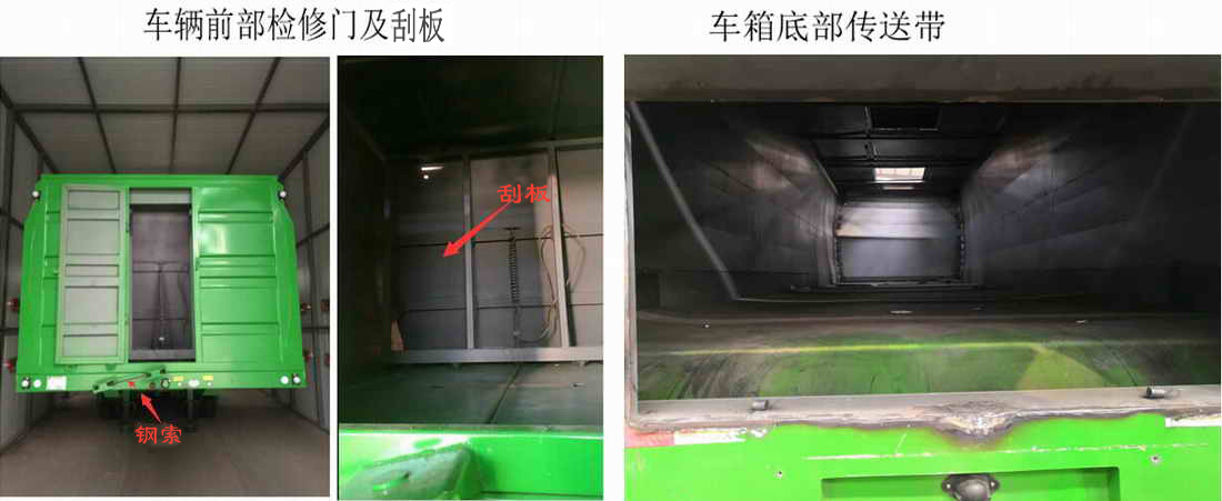 | 备注 | 该车用于散装粮食的运输;卸货方式为传送带传送,具体为后部液压马达驱动减速机滚筒,带动刮板与传送带实现平移卸货.该车顶部为硬质顶盖,顶部留有进料口;后部不能整体开启;车辆外形尺寸(mm)对应关系(车长/牵引销到车辆最前端距离/轴距/后悬)为:9500/1210/4140+1310+1310/1530,9500/1430/3920+1310+1310/1530,9000/1010/4140+1310+1310/1230,9000/1180/3770+1310+1310/1430,8500/730/3920+1310+1310/1230,8500/780/3770+1310+1310/1330;ABS系统厂家为广州瑞立科密汽车电子股份有限公司,型号为CM2XL-4S/2M;侧防护装置与后下部防护装置材料均采用Q235B,与车架连接方式均为焊接,后下部防护装置离地高度为440mm,截面高度为140mm×60mm。 | ||