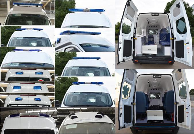 | 备注 | 随底盘选装轮辋、前脸、侧拉门踏板、侧拉窗、尾部标识,选装不同造型长条警示灯、不同造型小警示灯、医疗舱左侧盲窗、后踏板、侧踏板、伸缩踏板、充电插座位置、医用急救标识、顶部排气扇、异形警示灯、简易内饰。后部选装后踏板时车长5509mm;选装两侧拉门踏板时车宽2095mm,单侧拉门踏板时车宽2082mm;选装顶部扁换气扇时整车高2425mm;选装顶部圆形换气扇时高2495mm;选装顶部长条警示灯时整车高2540mm;配备医疗器械柜、氧气瓶、担架、消毒灯、特种车辆标志灯及警报器等专用装置;装配简易医疗柜时整备质量为2350kg,装配较重医疗柜时整备质量为2496kg,装配较重担架、担架平台设备时整备质量为2640kg,装配呼吸机等较重医疗设备时整备质量为2800kg。ABS系统控制器型号为EV5051,生产厂为博世汽车部件(苏州)有限公司。发动机最大净功率147kW。 | ||