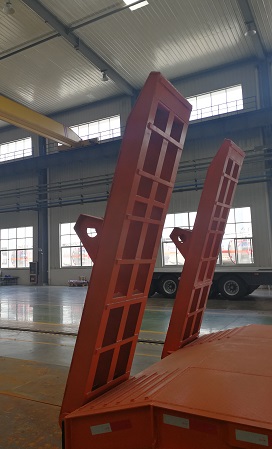 | 备注 | 该车仅可运输不可拆解物体,鹅颈部位不允许载货.该车采用钢性悬挂.低平板货台承载面高度为910mm,可选970mm,1050mm,.选装后尾部样式,爬梯.不装爬梯时整车高度为1750mm或1820mm.选装爬梯时整车高度为3100mm或3600mm.侧防护装置左右一致.材料为Q235,与车架连接方式为螺栓连接.车辆后部结构离地高度为400mm,故按照标准规定未安装后防护。ABS厂家为梁山海纳电子科技发展有限公司,型号为HNABS-4S/2M . | ||