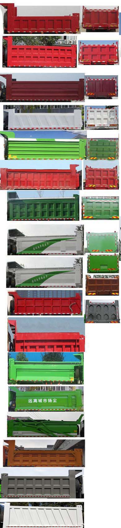 | 备注 | 该车型选装环保密封盖,选装货箱外观,自卸方式为后卸;外形尺寸长度与后悬尺寸一一对应。该车左、右侧防护装置安装在车架左、右纵梁上,其材料为钢板Q235,连接方式为螺栓连接,;后下部防护装置与主车架连接,材料为方管Q235,连接方式为螺栓连接,截面尺寸为120mm×120mm,下缘离地高度为480mm。该车型安装具有卫星定位功能的行驶记录仪。ABS系统型号为4460046300,生产企业为威伯科汽车控制系统(中国)有限公司。 | ||