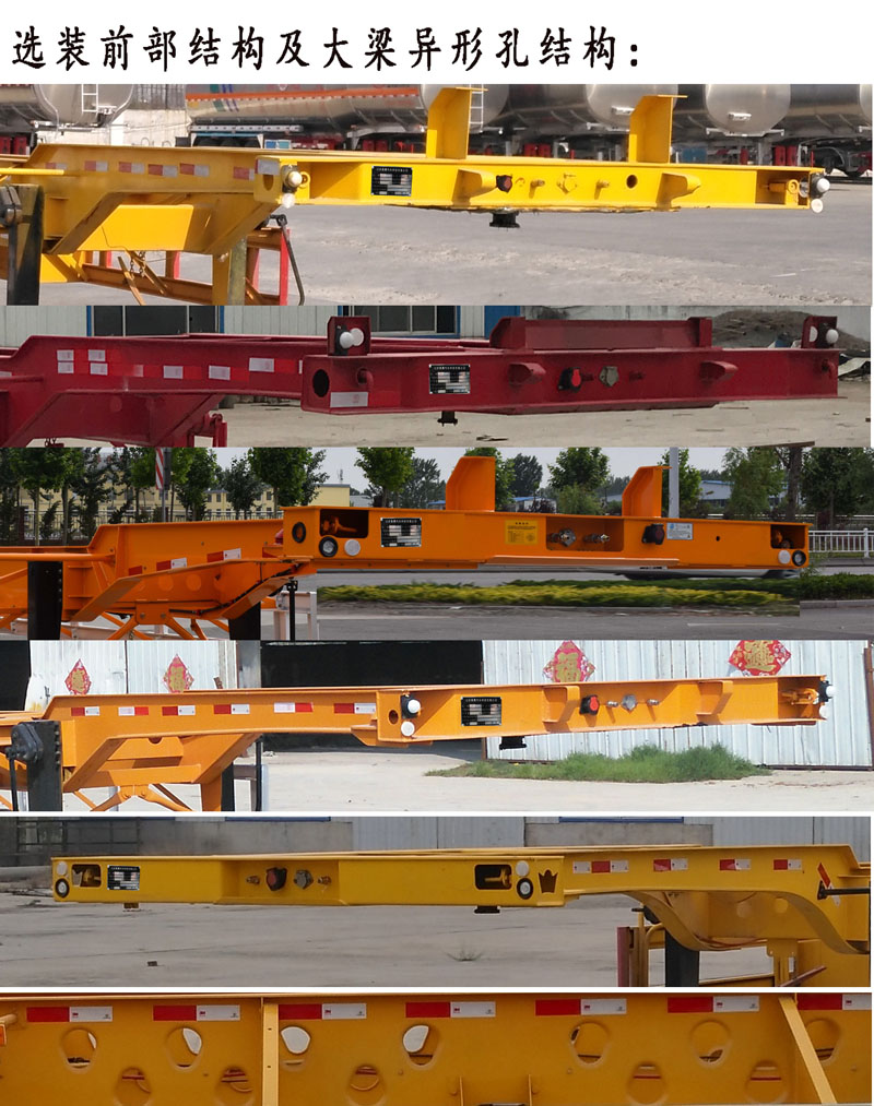| 备注 | 该车用于运输45英尺集装箱.集装箱类型为1EE型.该车采用"小鹅颈"结构.牵引销处车架高度210mm;选装前部结构,选装带导向块时高度为:1650mm,1600mm,1550mm,1500mm,选装大梁异型孔,一,ABS:型号: CM2XL-4S/2M;生产厂家: 广州瑞立科密汽车电子股份有限公司, 二,防护装置:侧后防护材料均采用Q235B,侧防护与车架为螺栓连接,后防护与车架为焊接,后防护截面尺寸:140X55,离地高度为480mm.尺寸关系一一对应. | ||
