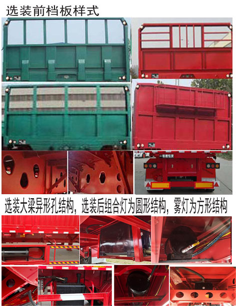 | 备注 | 该车为侧卸,选装吊开门结构和下开门结构,选装前档板结构,选装后部组合灯为圆形结构,雾灯为方形结构,选装大梁异形孔结构;一,ABS系统生产厂家/型号:梁山顺安达汽车科技有限公司/SAD-ABS4S2M,二,防护:防护材料均采用Q235B,与车辆连接方式均为焊接.后防护截面尺寸(mm):140X55:离地高度为420mm,尺寸关系一一对应, | ||