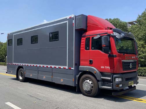 | 备注 | ABS型号:4460046300;ABS生产企业:威伯科(上海)管理有限公司;“仅用××发动机、××轮胎”情况:仅采用6050mm轴距;所用材料材质、连接方式以及后部防护装置的主要尺寸参数(断面尺寸和离地高度):车身裙边结构代替侧面防护装置,后防护装置材料:Q235A,截面尺寸(高×宽):120×100mm,与车辆连接方式:螺栓连接,后防护离地高度:440mm;车厢顶部封闭且不可开启;专用功能及装置描述:主要配备宿营床铺,发电机,空调等配套设施,用于野战保障的临时宿营功能; | ||