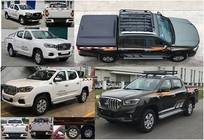 | 备注 | 选装车身反光标识、驾驶室天窗、硬质货箱平盖、护栏、防滚架、外绳钩、后拖车钩、车顶行李框(高2050mm)、行李架(高1845mm)、前防护杠(长5830mm、前悬1092mm、接近角22.8°)、喷漆格栅、钢轮圈、铝轮圈、侧围标识、尾部标识、涉水喉、集滤器、底盘护板;选装与车身同色或镀铬的前后保险杠、后视镜、门把手;可选不装外绳钩、前雾灯、侧踏步;ABS型号:ABS 9.0,ESP9;ABS生产企业:博世汽车部件(苏州)有限公司,博世汽车部件(苏州)有限公司;发动机最大净功率为109.3kW. | ||