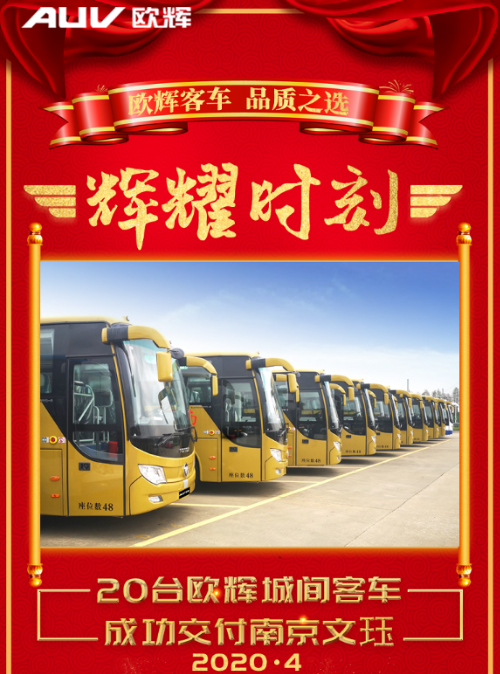 近日,20辆欧辉BJ6113系列城间客车顺利交付南京玉珏汽车服务有限公司(以下简称南京文珏),助力南京机场接驳客运品质升级。