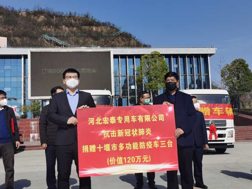 位于湖北省十堰市的东风商用车有限公司,在疫情防控攻坚阶段, 3月11日迎来了河北宏泰集团的支援。该集团向十堰市捐赠了3台雾炮消毒车、与东风商用车有限公司签订了800台底盘采购协议。